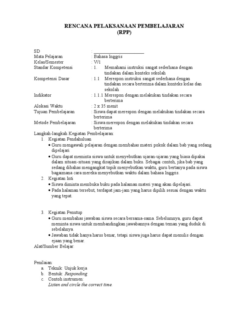 Dalam RPP ini kami mengajarkan kan kegiatan sehari hari. Simpan Simpan RPP Bahasa Inggris SD Kelas 5 Untuk Nanti. Mata Pelajaran.