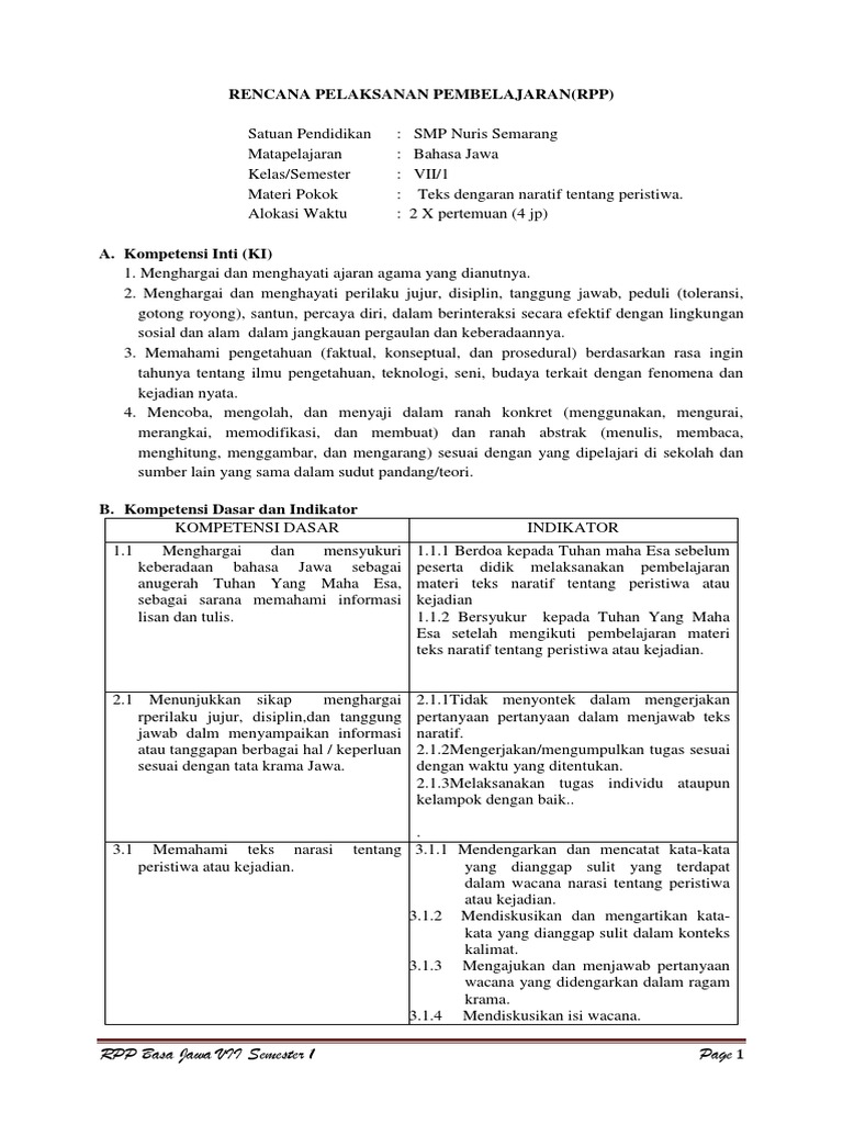 Rpp Bahasa Jawa Kelas 7 Semester 1 Kurikulum 2013