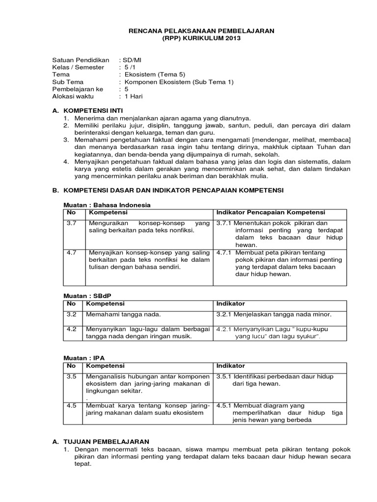 Get Rpp Bahasa Indonesia Kelas 5 Tema 3 : Contoh Rpp 1 Halaman Kelas 5