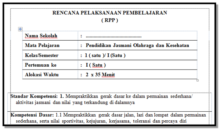RPP PJOK K13 Revisi 2017 Format Microsoft Word | Kurikulum 2013 Revisi Blog
