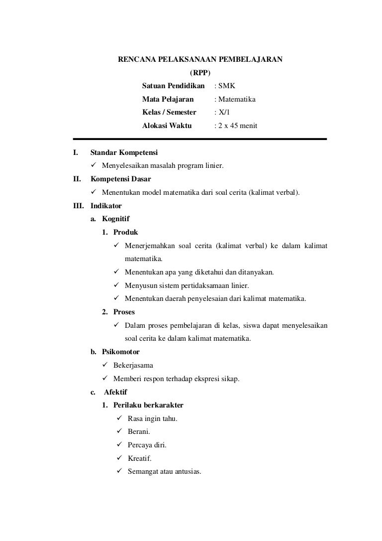 Contoh Rpp Silabus / Rpp 1 Lembar Smp Bahasa Indonesia Kelas 7 8 9