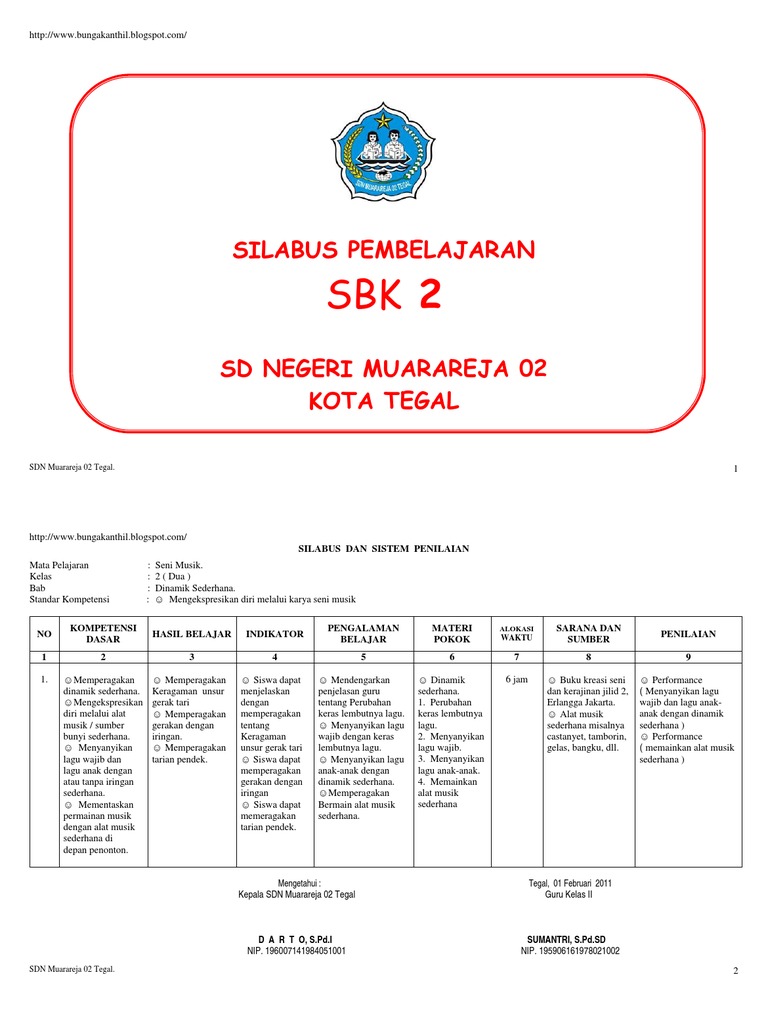 Rpp Sbk Kelas 1 Sd Semester 1 Dan 2 | Bagikan Kelas