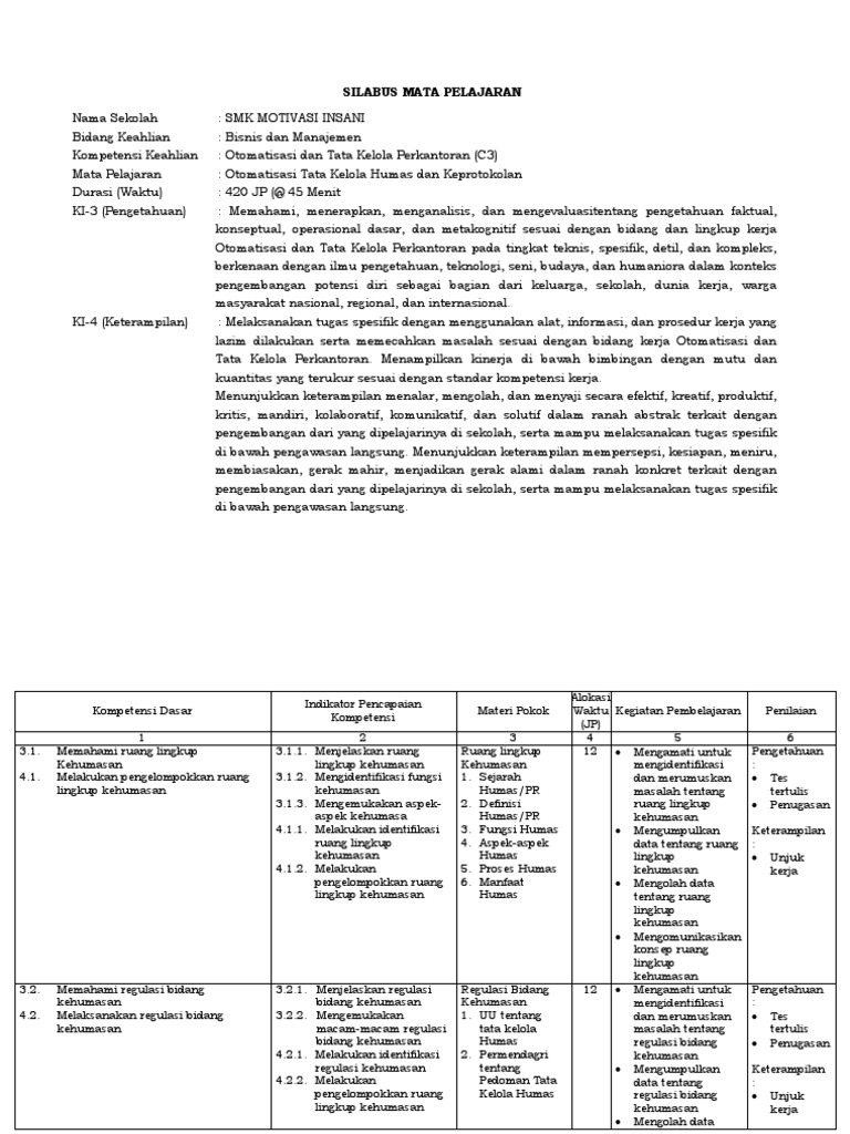 Silabus K13 Rev Otomatisasi Tata Kelola Humas Dan Keprotokolan