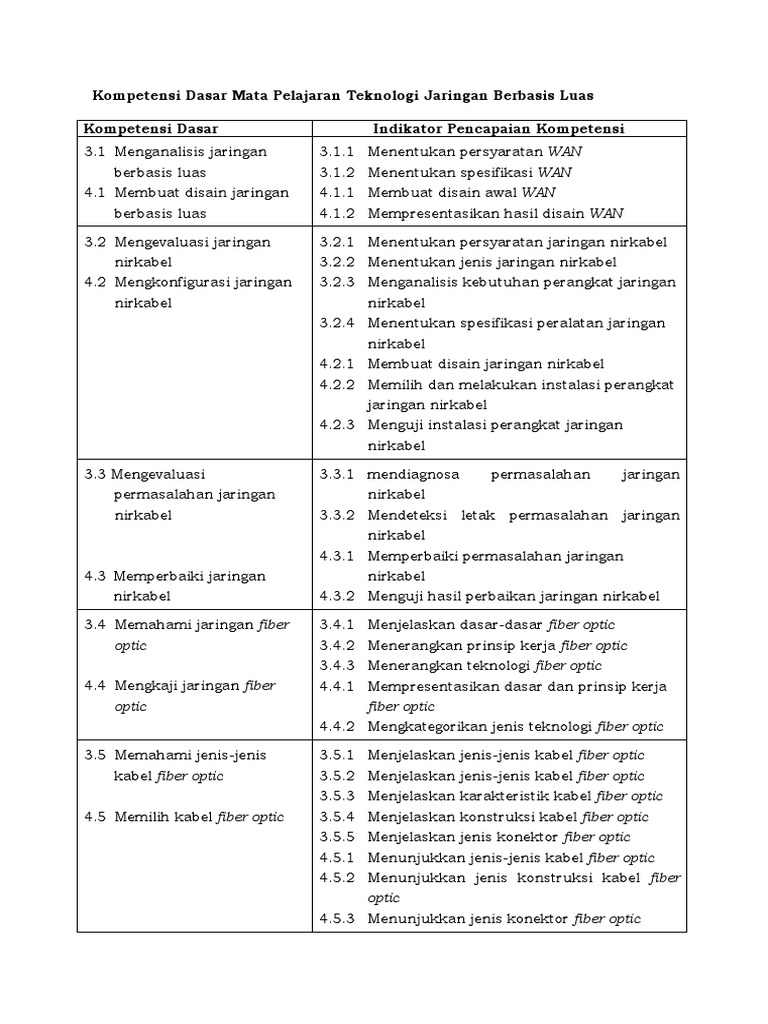 Teknologi Informasi dan Komunikasi Kompetensi. Jaringan Berbasis Luas WAN Definisi konsep Dasar. Web Dan berikut ruang lingkup materi yang terdapat pada RPP DAN SILABUS SMK TEKNIK JARINGAN BERBASIS LUAS KELAS 11 K13 REVISI 2017 diantaranya sebagai berikut.