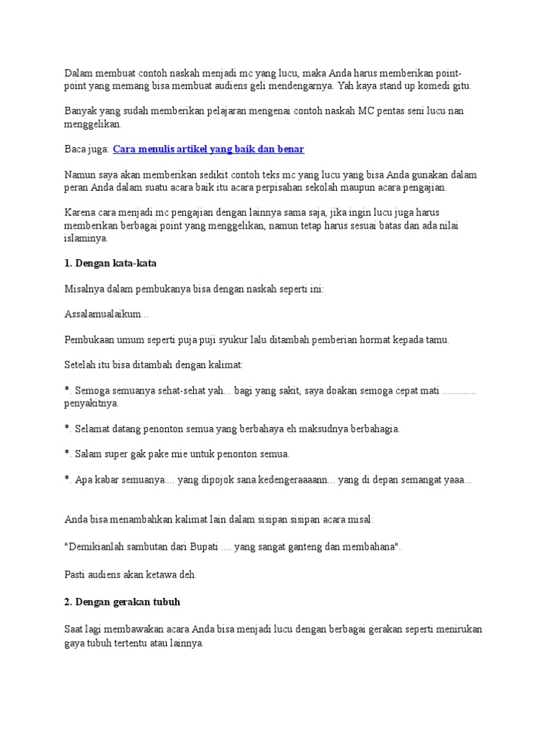 Aku mc dangdut plus pop sunda tpi teu tiasa ngemsi ku bhsa indohyong anu paten acara bubuka kanggo dangdut d panggung hajatanmanawi tiasa ngabantos bde nyuhun kn elmu nahtur nuhun. Kata-Kata Bijak Bahasa Jawa Kuno. 20 Contoh Teks MC Formal dan Non Formal dalam Berbagai Acara.