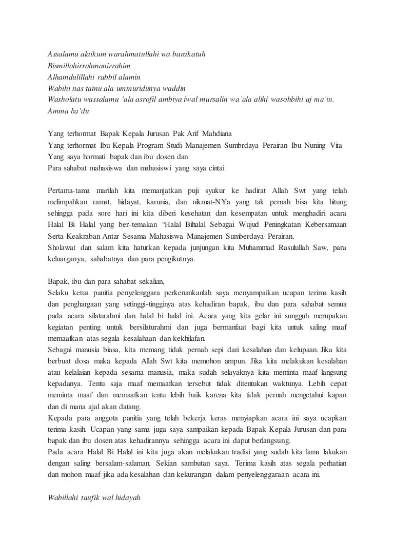 Dalam suasana yang penunuh kebahagiaan malam ini marilah kita terlebih. Web Berikut adalah beberapa contoh kata sambutan Halal Bihalal yang bisa kamu pakai di hari raya Idul Fitri 1443 H. Saya atas nama mohon izin untuk.