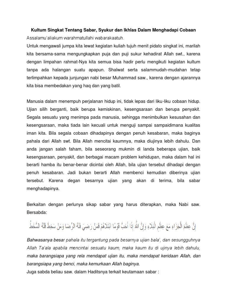 Berikut adalah contoh teks pembukaan kultum yang dikutip. Contoh Pidato Singkat Untuk Muhadhoroh Jumat Pagi. Ilustrasi Teks Pembukaan Kultum.