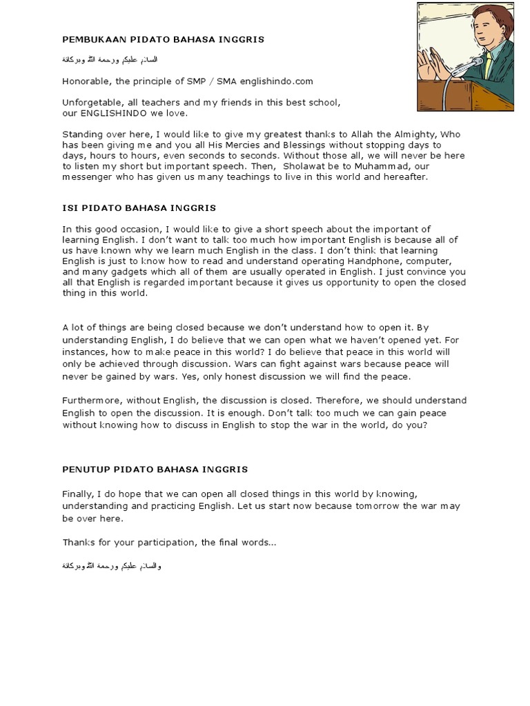 Closing Salam penutup diakhir presentasi dalam Bahasa Inggris Sebuah presentasi tidak hanya dibuka dengan pembukaan yang bagus tetapi harus ditutup dengan salam penutup yang berkesan. Adapun beberapa contoh acara yang biasanya menggunakan kata sambutan adalah rapat seminar perayaan workshop dan sebagainya. 13 Contoh Pidato Bahasa Inggris Tema Kemerdekaan Plus Artinya Contoh Pidato Bahasa Inggris Tema Kemerdekaan – Kita wajib selalu ingat pada hari Jumat 17 Agustus 1945 Indonesia secara resmi merdeka dengan diawali.