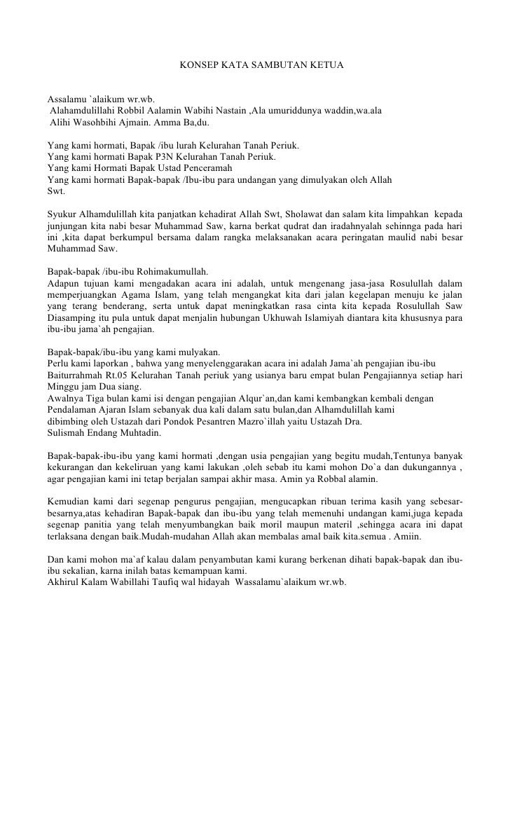Puji syukur kita haturkan kepada Allah Subhanahu Wa Taala shalawat salam kepada Baginda Nabi Besar Muhammad Shallallahu Alaihi Wasallam. Contoh Kata Sambutan Ketua Organisasi Ketua Panitia Bulan Ramadhan. Jika butuh bantuan menyusun naskah sambutan silakan wa 0816482 7590.