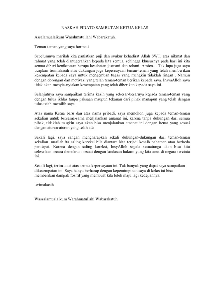Naskah Pidato Sambutan Ketua Kelas