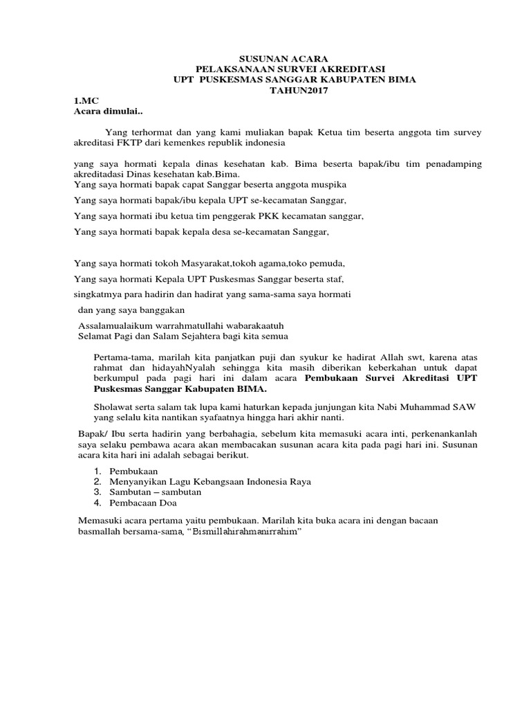 Susunan acara bimbingan akreditasi pokja medis Dr. Tentunya Anda akan merasa kurang enak apabila dalam berpidato tidak ada sambutan karena memang dengan adanya sambutan membuat pidato yang dibawakan lebih sopan dan. Jika butuh bantuan menyusun naskah sambutan silakan wa 0816482 7590.