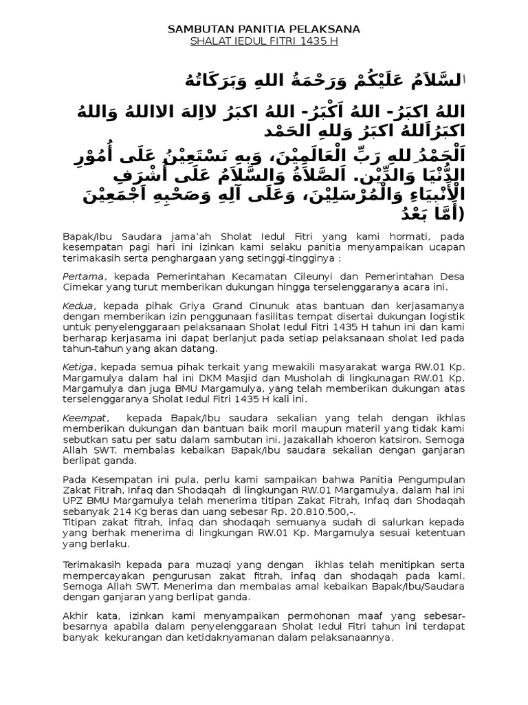 Susunan Panitia Zakat Fitrah 1438 H. Panitia Zakat Fitrah 1429 H. CONTOH TEKS SAMBUTAN KETUA DKM PADA ACARA SHALAT IDUL FITRI.