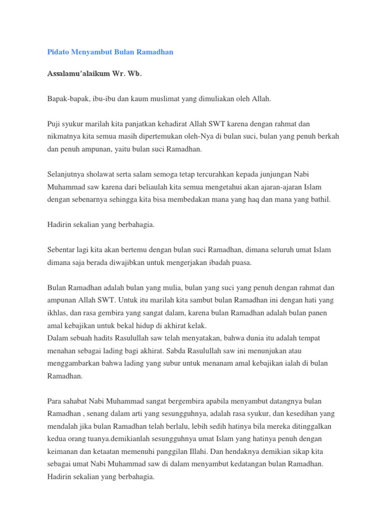 Teks Pidato Singkat Menyambut Bulan Suci Ramadhan – Kumpulan Contoh