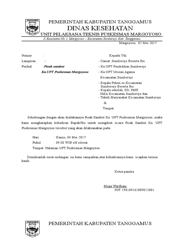 Bersama ini dengan hormat disampaikan undangan acara pisah sambut dalam