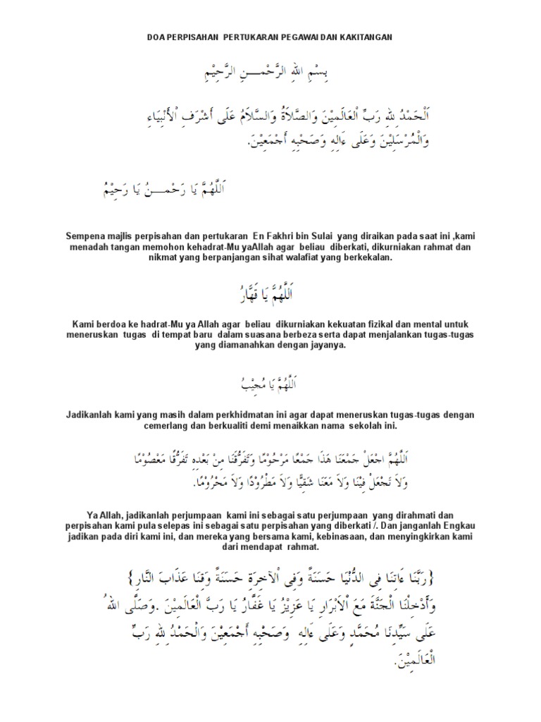 Web Doa Pisah Sambut. اعوذ بالله من الشيطان الرجيم. Demikian informasi mengenai contoh teks doa sertijab doa serah terima Jabatan.