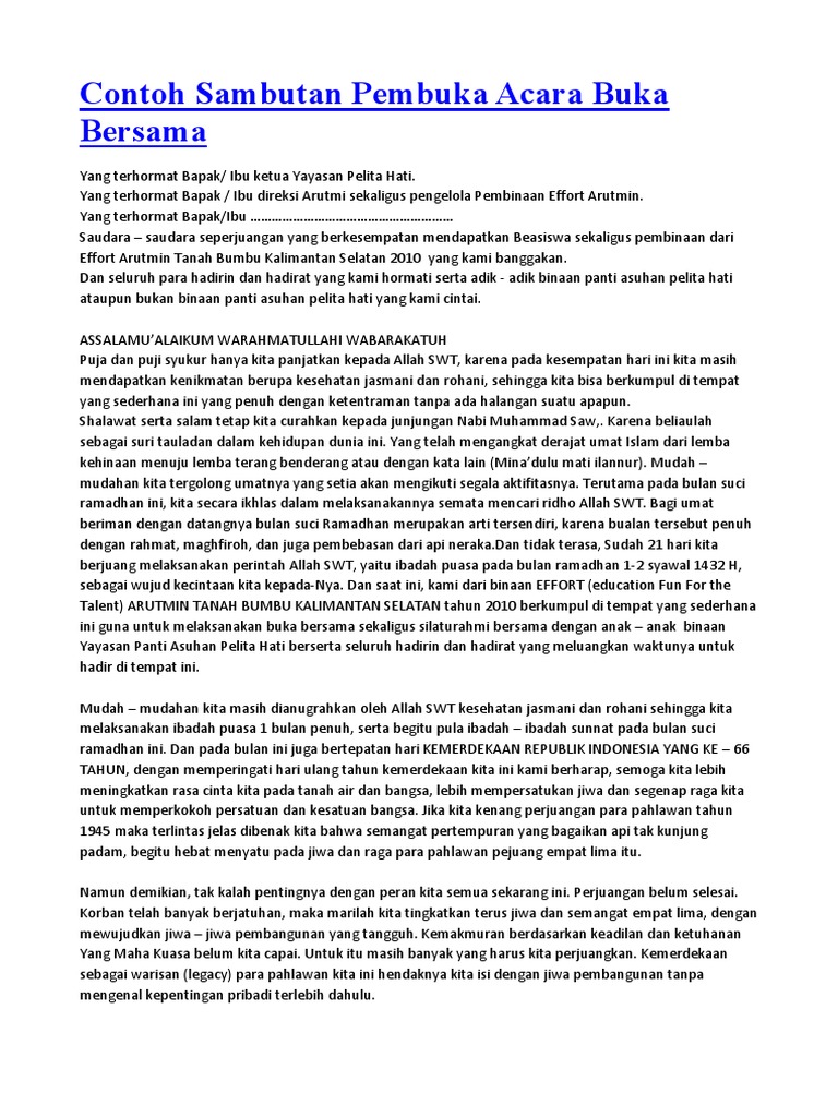 Kata Sambutan Buka Bersama Pdf. Agar terlihat berwibawa materi untuk sambutan pun akan lebih baik jika dipersiapkan terlebih dulu. Sambutan dari ketua panitia Jihan 4.