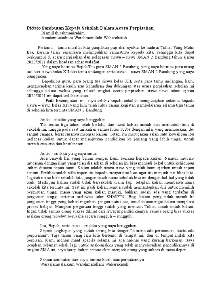Web Bagi yang mencari referensi contoh teks sambutan atau pidato kepala sekolah dalam acara perpisahan kelas 9 SMP MTs simak artikel ini.