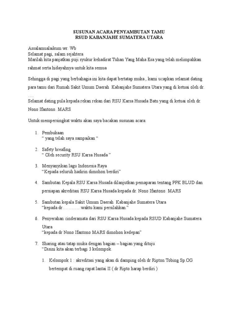 Teks mc untuk penyambutan tamu adiwiyata. Web BapakIbu Guru dan staff karyawan SMA. Selamat sore shalom om swastiastu namo buddhaya salam kebajikan untuk kita. MC harus paham betul untuk menjaga perilaku dan sopan santun baik dalam bentuk lisan maupun bahasa tubuh dalam memandu.