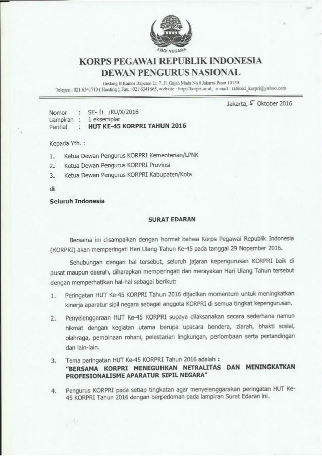 Surat Edaran dan Pedoman HUT Ke-45 KORPRI Tahun 2016 | Inspirasi Titi