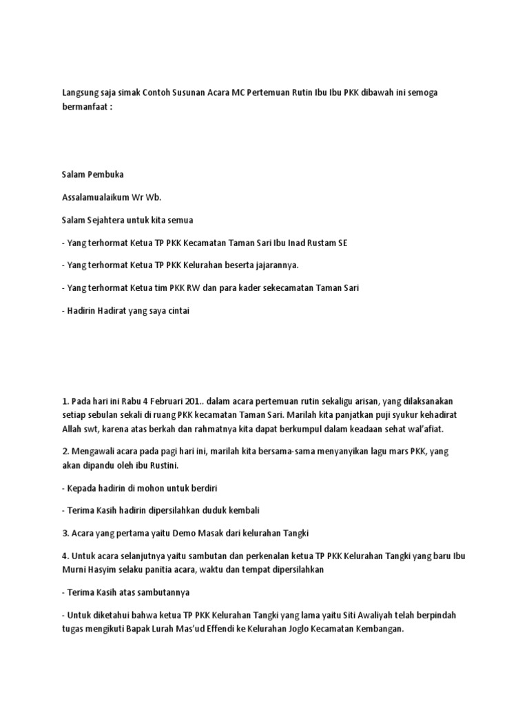 Langsung Saja Simak Contoh Susunan Acara Mc Pertemuan Rutin Ibu Ibu Pkk Dibawah Ini Semoga Bermanfaat Pdf