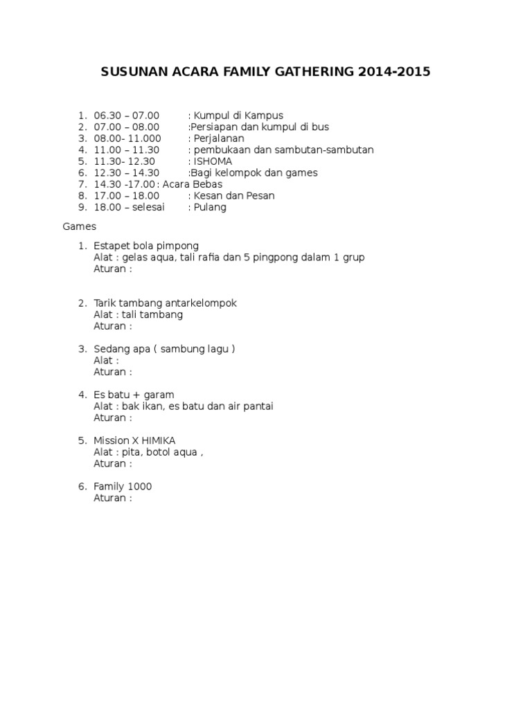 40 koleski terbaik contoh susunan acara family gathering kantor feiwie dasmeer. Susunan Acara Gathering Family. Contoh susunan acara family gathering di pantai surat r.