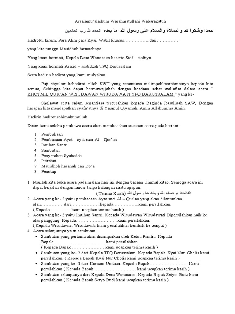 Teks Pembawa Acara Mc Imtas Tpq Terbaru Makalah Pedia