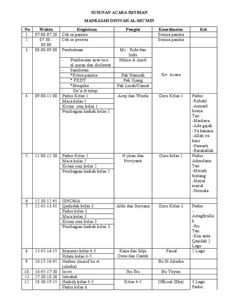 Susunan Acara Imtihan Pdf