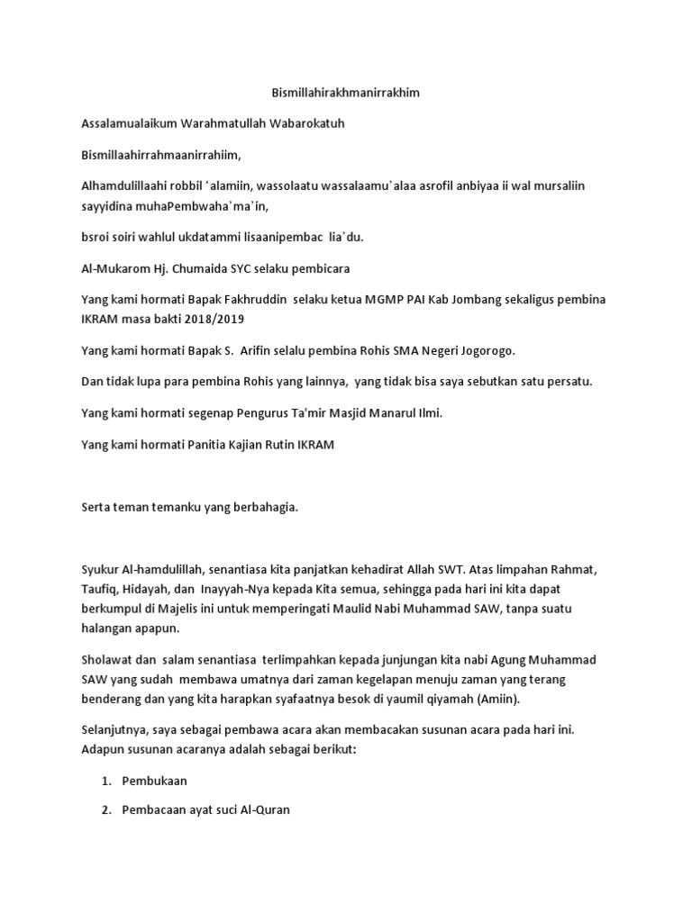 Kalimat Sambutan Pembawa Acara Maulid Pdf
