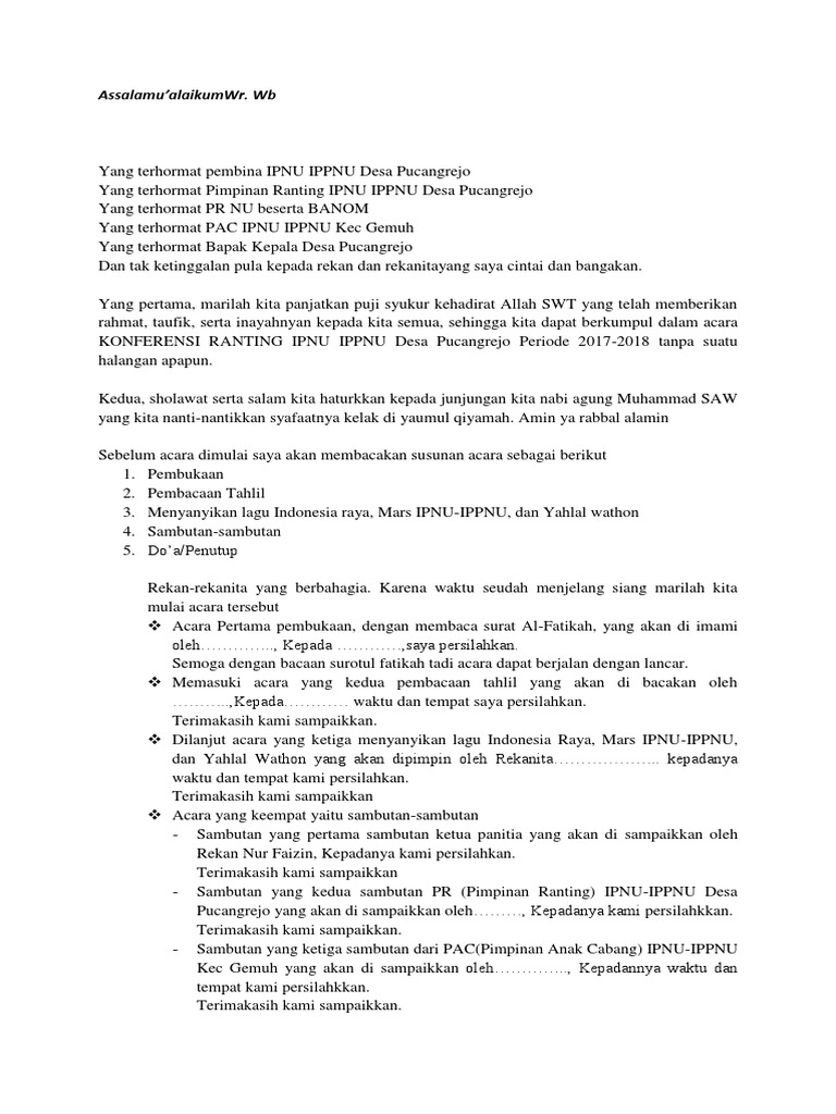 Teks Pembawa Acara Konferensi Ranting Pdf