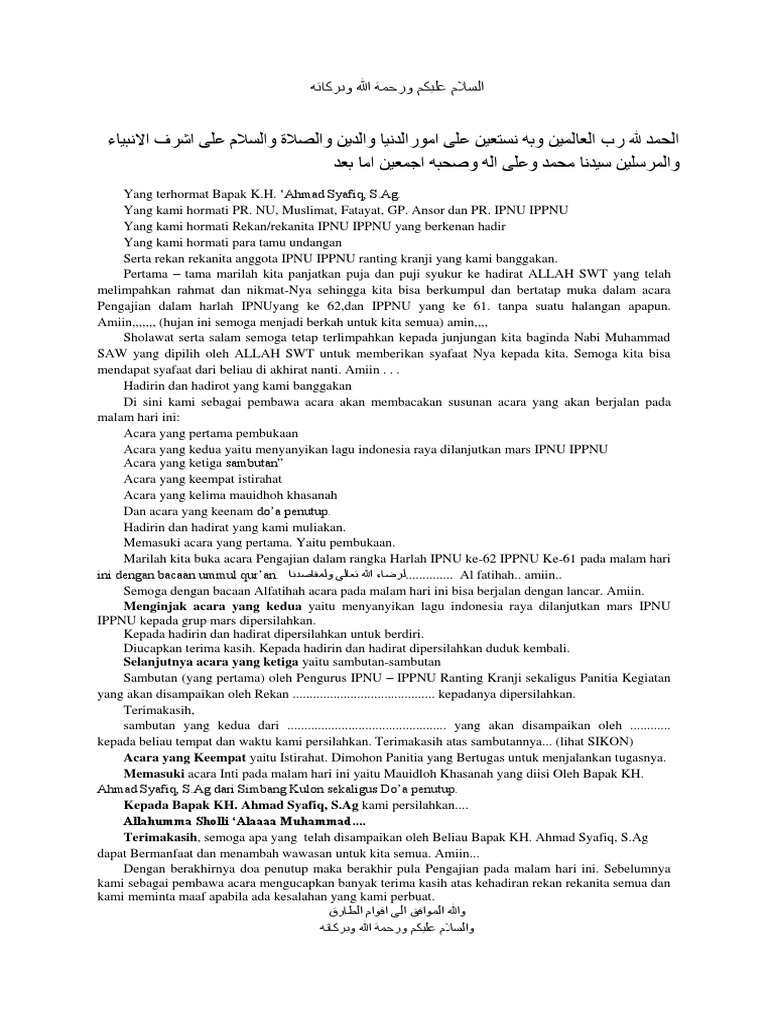 Contoh Teks Mc Pengajian Fatayat Muslimat Tukaffe Com