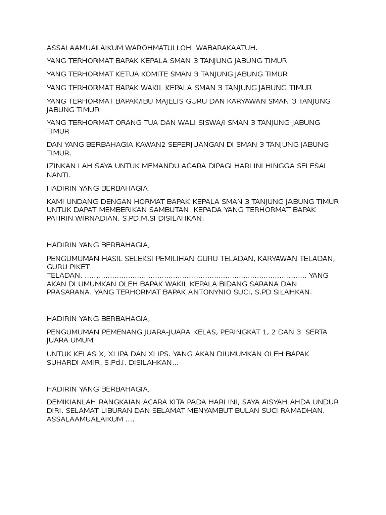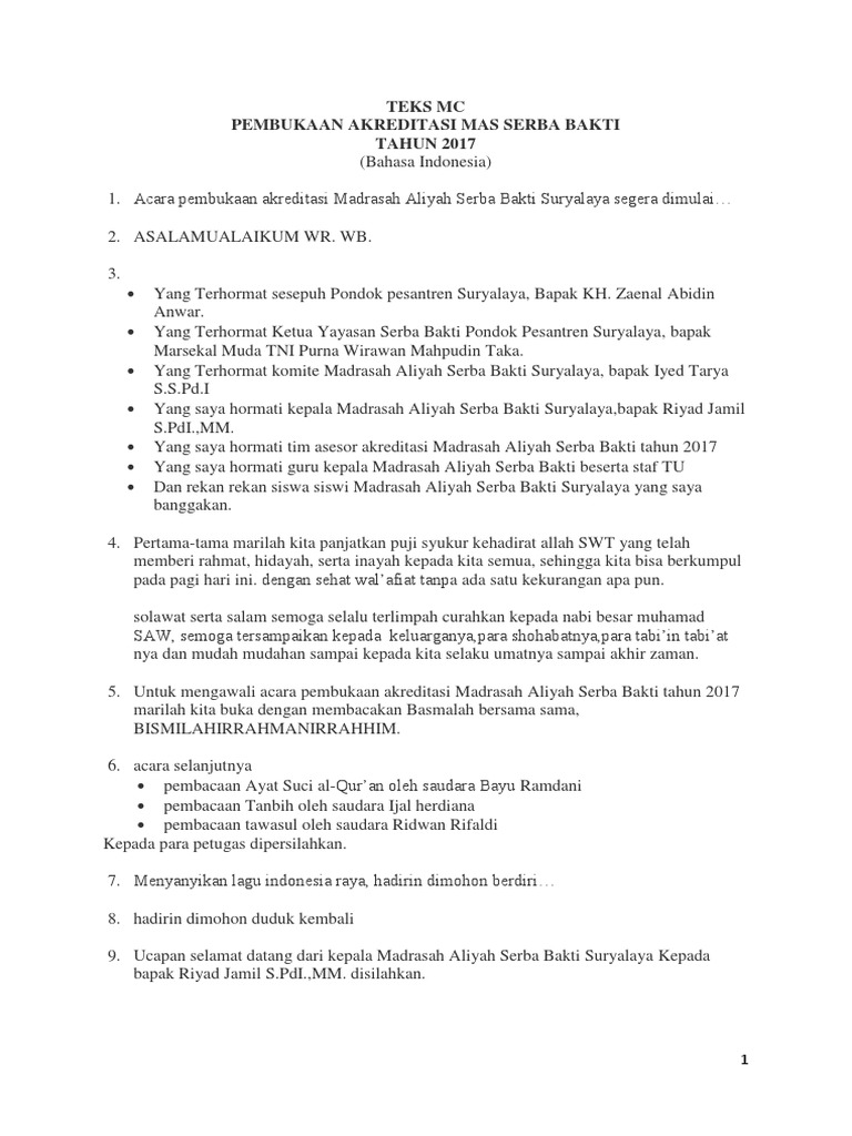 Naskah Teks Mc Rapat Pertemuan Wali Murid Pdf