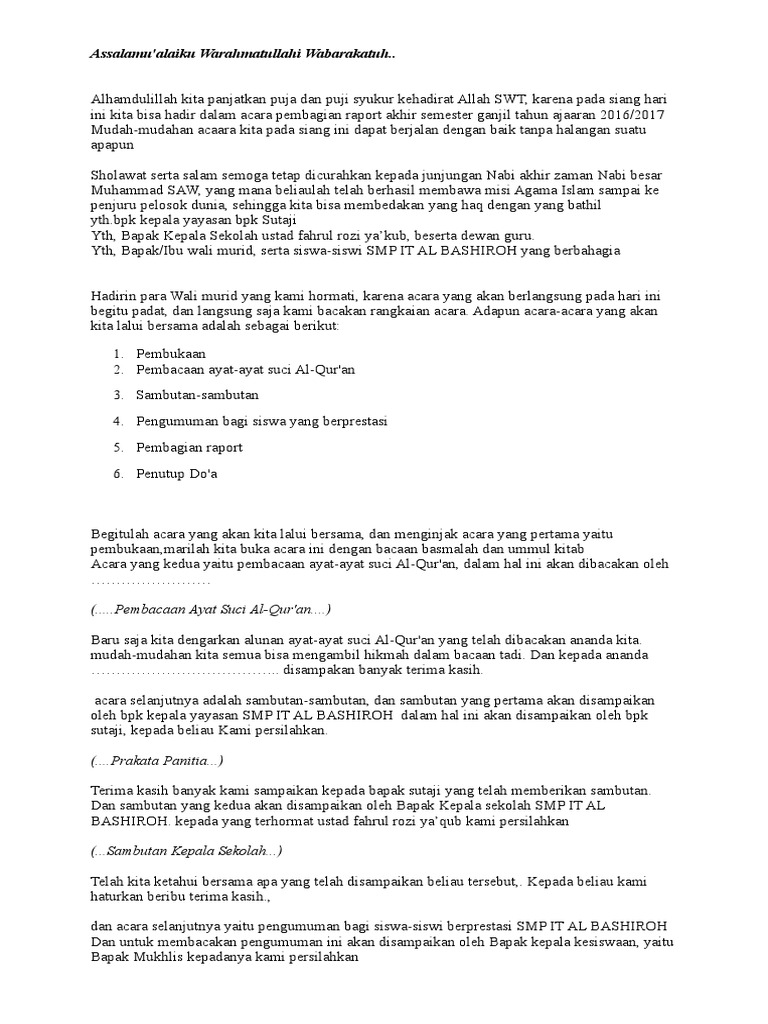 Maulid nabi adalah salah satu acara besar yang diperingati oleh masyarakat Indonesia yang beragama Islam. Contoh Teks MC Bahasa Indonesia. Pembagian Raport Semester Gasal Tahun Ataran 14311432 H.