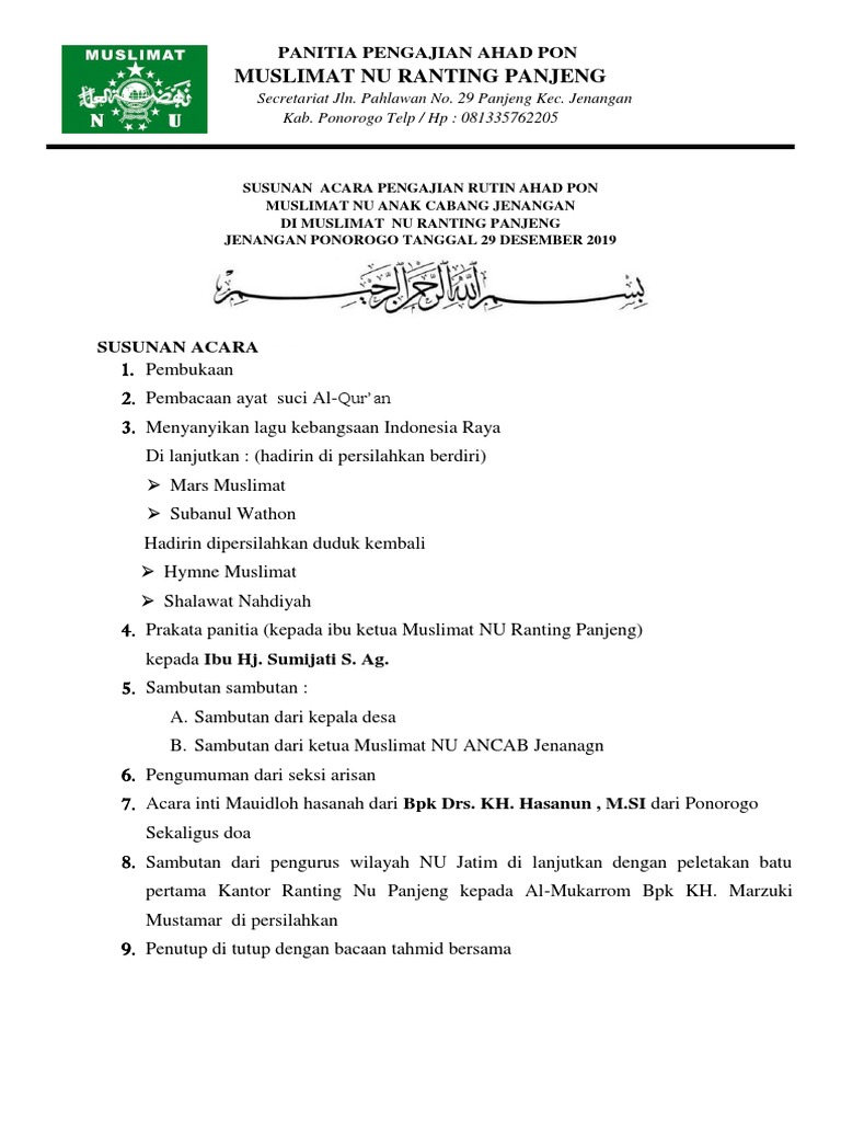 Teks Mc Pengajian Rutinan Jum At Pahing Muslimat Nahdlatul Ulama Anak Cabang Widodaren Mariyadi Com