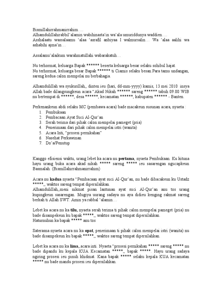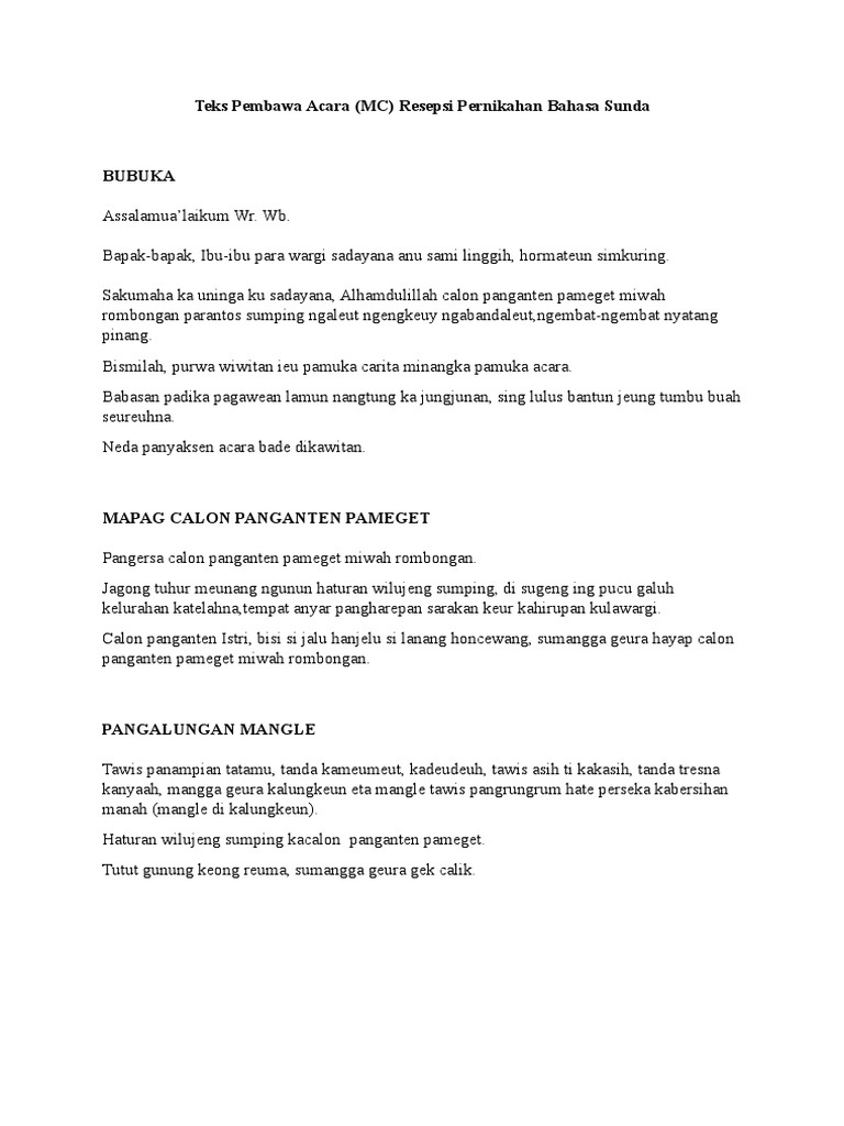 Contoh Teks Mc Pembawa Acara Pernikahan Bahasa Sunda Pdf