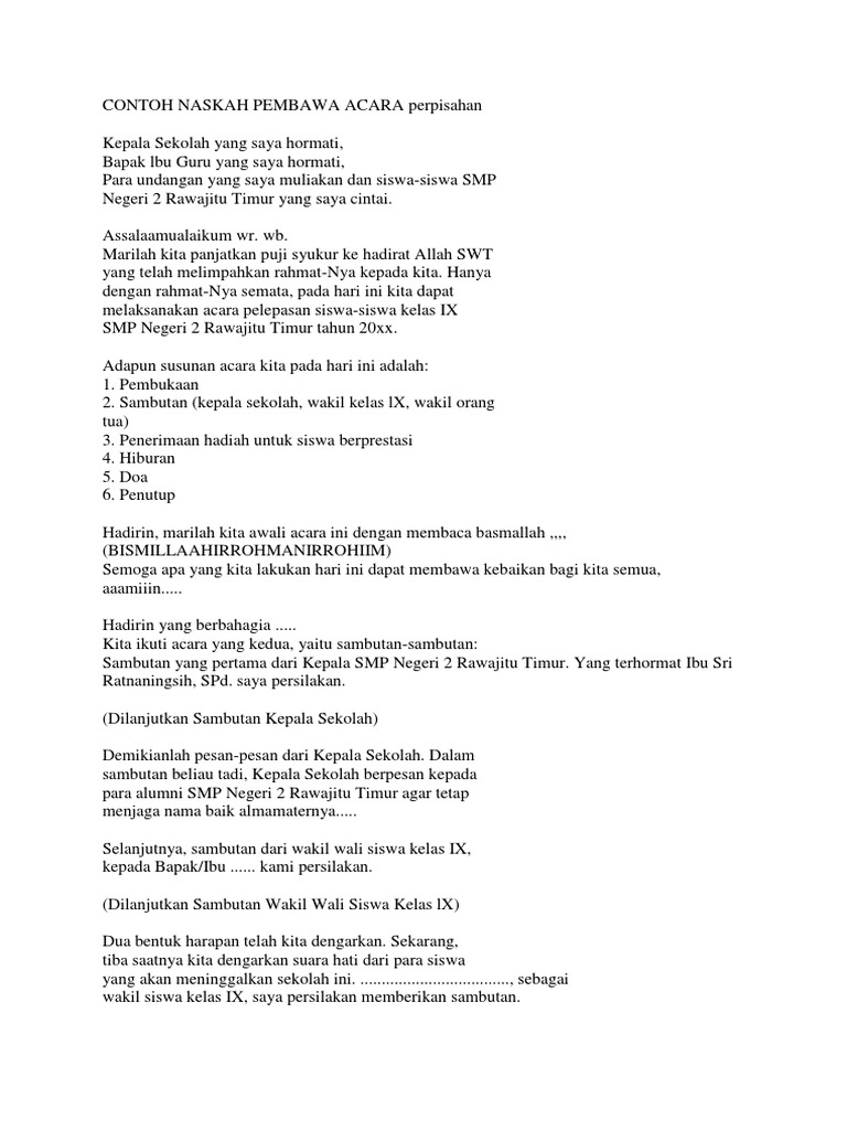 Contoh Naskah Pembawa Acara Perpisahan Pdf