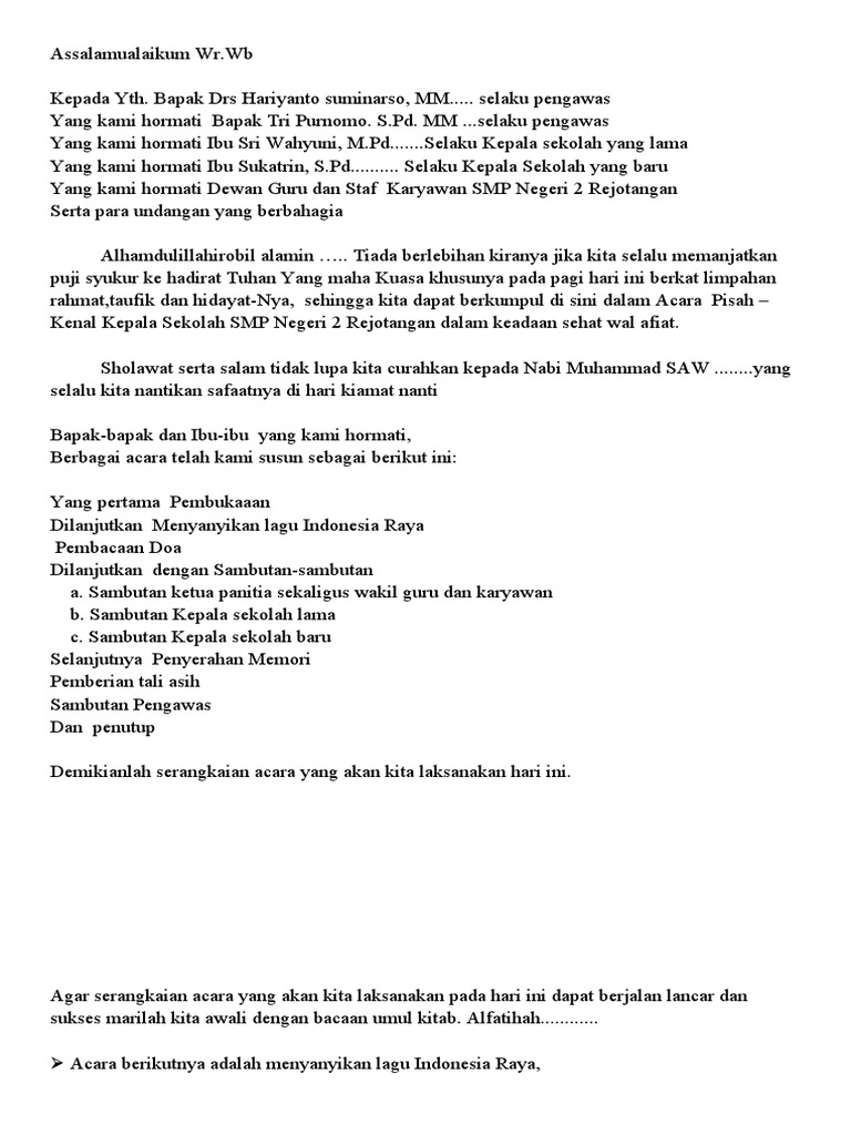 Adapun susunan acara perpisahan kepala sekolah adalah sebagai berikut. Web Adapun susunan acara pisah sambut kepala sekolah sebagai berikut. Sambutan nurhasnah dalam acara pisah.
