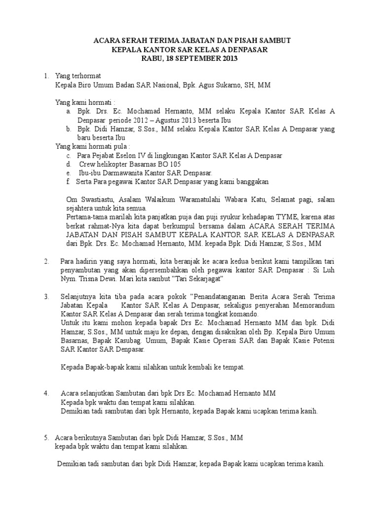 Acara ini dihadiri oleh KACABDIN Kota Manado para mantan kepala. Web Contoh teks sambutan dari kepala sekolah dalam acara lepas pisah Sekolah SD SMP SMA yang sederhana dan siap digunakan. Web Doa Pisah Sambut.