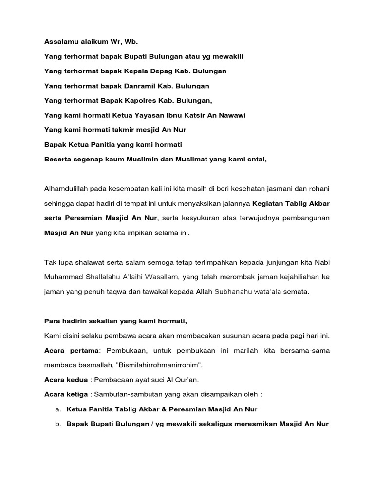 Susunan Acara Peresmian Masjid – Lina Pdf
