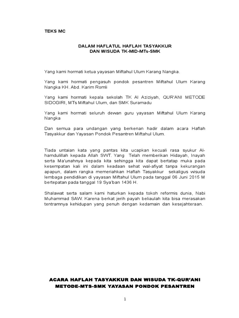 Contoh Teks Mc Wisuda Siswa Pdf Monoteisme Alquran