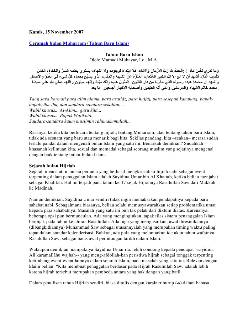 Teks Pidato Bahasa Arab Tentang Peranan Maal Hijrah / Dan sungguh telah