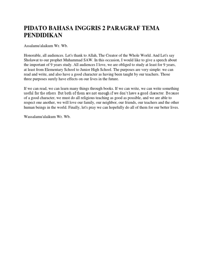 Pidato bahasa Inggris memang banyak kegunaan nya tetapi tema yang admin kali ini bawa tentang pendidikan tentu saja untuk ranah dunia pendidikan. وبه نستعين علي أمورا لد نيا وا لد ين. The Muslims and the Moslem that we respect.