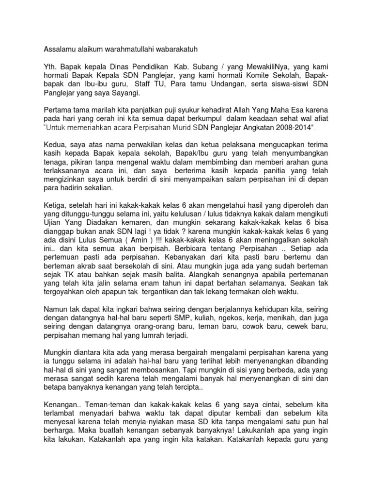 Contoh Pidato Perpisahan Kelas 6 Singkat Dan Mudah Dihafal Bahasa Jawa