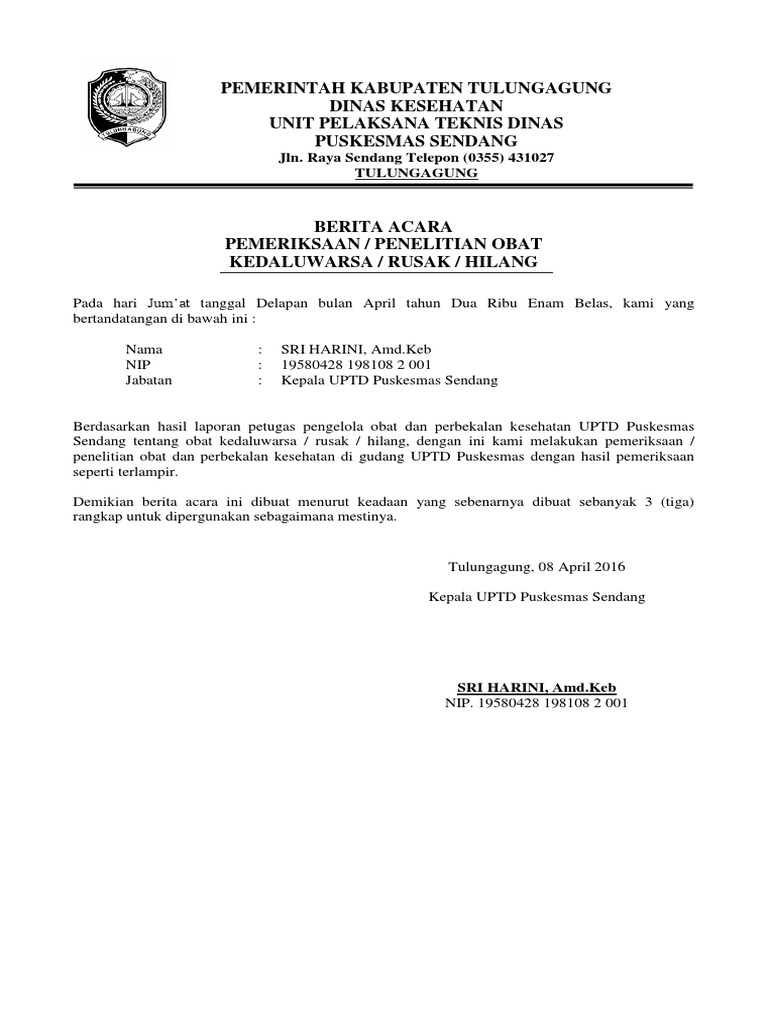 Contoh Surat Permohonan Pemusnahan Obat – 20 Contoh Surat Berita Acara