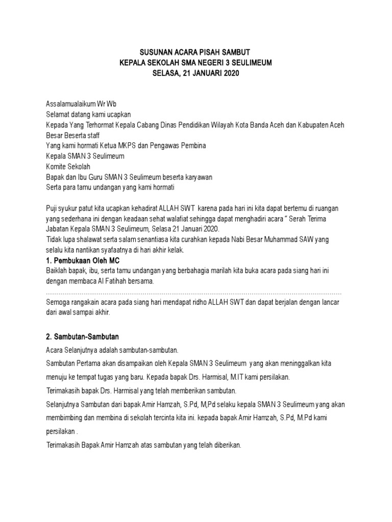 Susunan Acara Pisah Sambut Kepala Sekolah – Ilmu Penerang