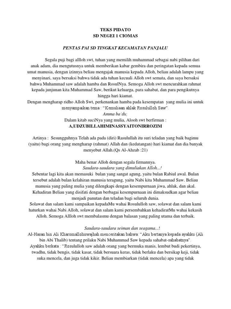 Contoh Pidato Sambutan Ketua Panitia Maulid