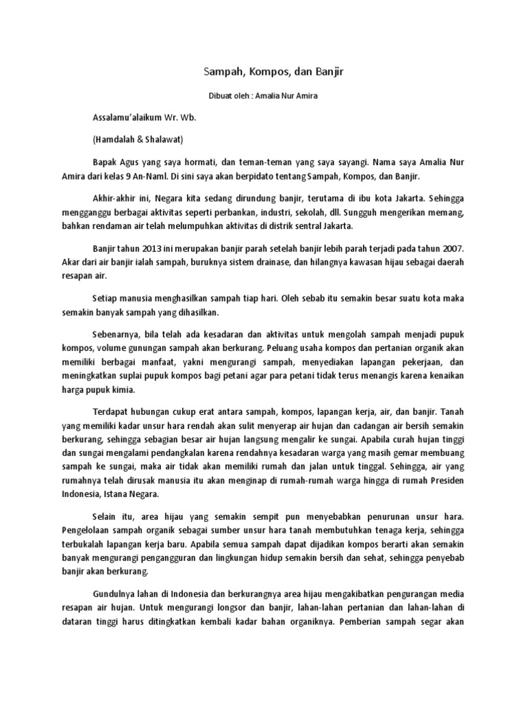 Pidato Sampah Kompos Dan Banjir