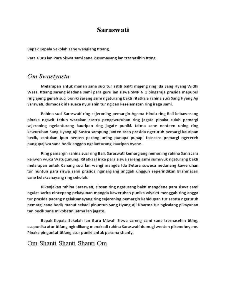 Pidato Bahasa Bali Saraswati – Ruang Jawaban