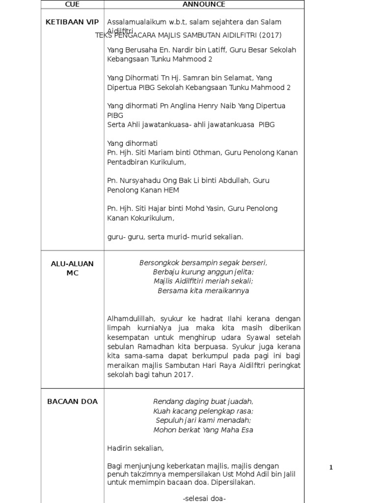 Teks Pengacara Majlis Sambutan Hari Raya – dairysy