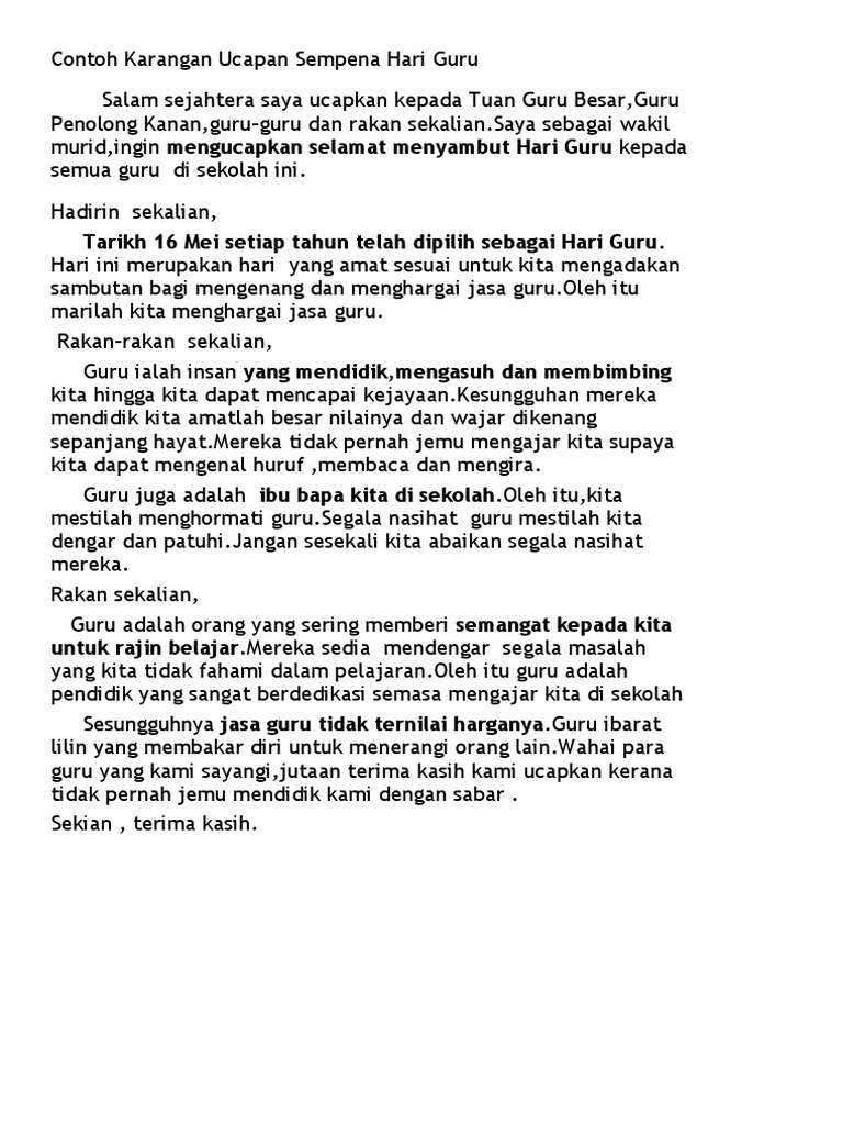 Web Naskah Sambutan Menteri Pendidikan Kebudayaan Riset dan Teknologi pada Upacara Hari Guru Nasional 2022 ini telah dibagikan melalui laman resmi. Web teks ucapan pengacara majlis sambutan hari guru dan pekerja sk bangsar 25 mei 2014 kata-kata aluan. Salam dan ucapan selawat keagamaan Baca juga.