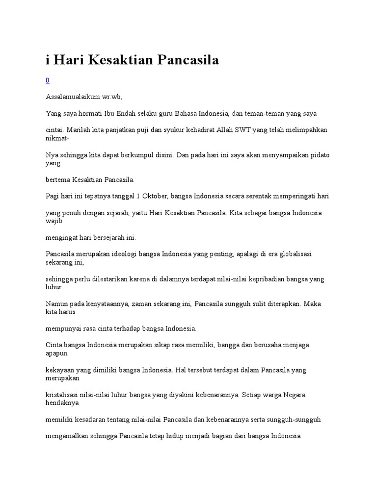 Web Contoh pidato Hari Kesaktian Pancasila di sekolah yang singkat dan menarik untuk peringatan pada 1 Oktober 2022. Web Upacara Hari Kesaktian Pancasila 2022 akan diselenggarakan di tingkat pusat berikut informasinya.